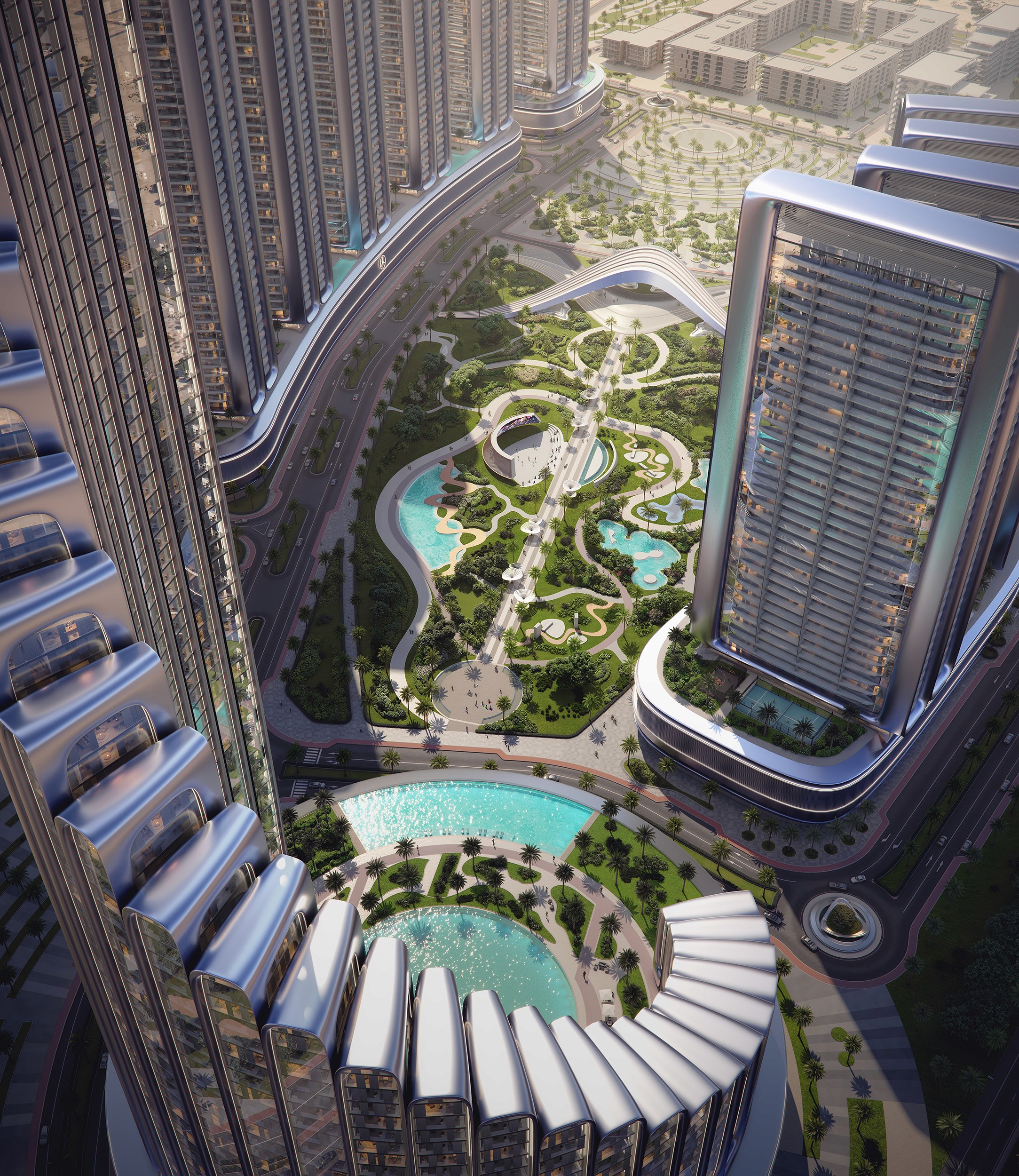 The project features luxury residential towers inspired by Mercedes-Benz design, integrated within a self-sustained urban community offering living, leisure, retail, wellness, and mobility experiences.